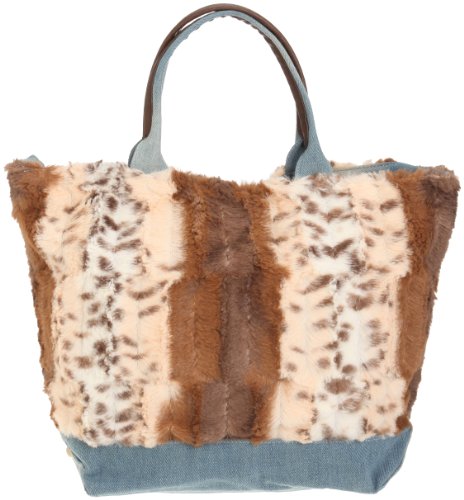 [クーコ] パッチワークファーxデニムトートバッグ